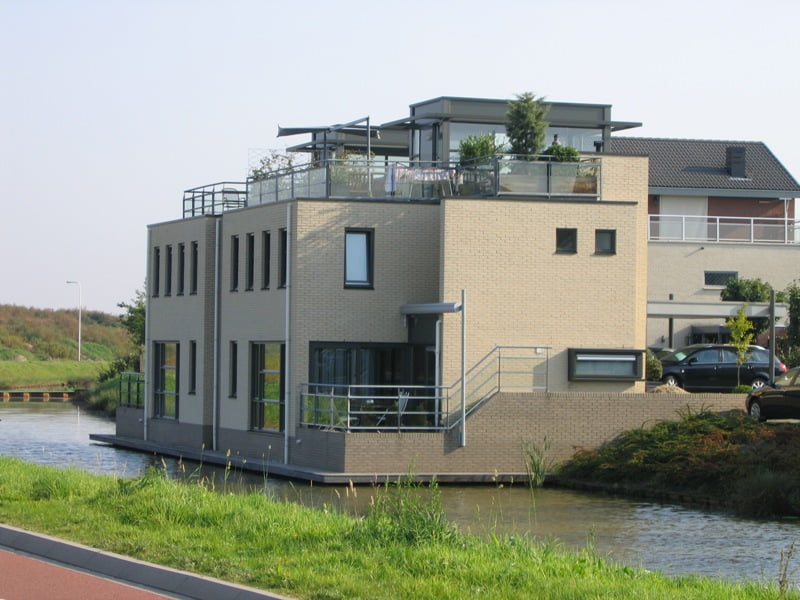 Deze bijzondere woningen liggen deels in het water, vandaar de naam 'waterwoningen'. In de Veeneslagen staan 6 van deze twee-onder-één kapwoningen.